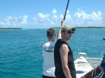 De gros poissons viennent roder autour du bateau. Bruno profite pour essayer d'en pécher, sans succès. |