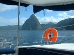 Entre Saint Vincent et Sainte Lucie, on essuie une bonne dépression avec gros vent et mer très agitée. Avec la voile, le catamaran fait des pointes de presque 12 nœuds. Après avoir essuyé encore 2 beaux grains, arrivée à 16h et mouillage à Marigot Bay. On doit payer la Clearence pour ce court séjour alors Bruno nous emmène avec l’annexe à terre et on profite pour aller se balader sur les hauteurs près du village de Marigot. De retour au bateau, un bon nombre de "Boatboys" viennent nous rendre visite puis départ vers le mouillage de ce soir.