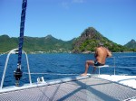 10h30 départ. Nous avons une longue navigation aujourd’hui pour regagner notre étape de ce soir. Durant le trajet, On pêche un thon jaune que Bruno prépare tout de suite en petit morceau avec du sel et du citron. A peine 1 heure après et nous le dégustons. C'est bien la première fois que je mangeais du poisson cru. Un régal.