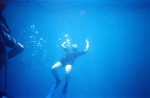 Babeth vient nous rejoindre et en l’absence de Patrick, elle reste près de moi. Tout va bien. Le paysage sous-marin est superbe et après un bon moment à admirer la faune et flore, nous repartons à travers la barrière jusqu’au bateau. Au retour, pris dans une vague, je me prends un corail "de feu" dans la main. Coupure sommaire et brûlure pendant un petit moment. Rien de bien méchant et tout le long du passage jusqu’au lagon, tout est superbe, un véritable aquarium.