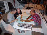 Puis, comme hier, on s'occupe. Un peu de sieste dans la cabine et carré externe, arrosage par les vagues et papotages.