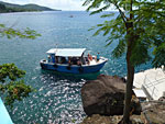 Départ à 8 h et petite navigation d’à peine un quart d’heure pour arriver devant le principal et seul ponton de l’îlet.