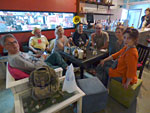 Puis à 9 h 30, on se rejoint tous dans le hall pour aller prendre un petit-déj dans un petit bar situé juste à côté. Je ne prends qu'une banane parmi celles que Brigitte a achetées non loin de là et me sert de plusieurs tasses de tisane gentiment offertes par le jeune serveur.