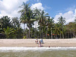 La plage n'est pas idyllique mais elle est bordée de cocotiers et apparemment tranquille.