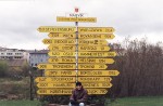 Il s'agit d'un grand panneau routier indiquant le nombre de kilomètres séparant Narvik avec quelques principales villes européennes dont Paris et on constate justement que nous sommes à peu près à égale distance entre Paris, 2979 km et le pôle nord, 2420 km !