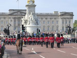 Je prends le métro à la station "Baker Street" jusqu’à la station "Green park" par la "Jubille Line" puis me rends à pied jusqu’au palais à travers St James Park arrivant pile poil au passage de la garde, toute musique en tête.