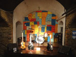 Dans la tour centrale en forme d'entonnoir et composée elle aussi d'une multitude de vitraux, les fenêtres diffusent un kaléidoscope de couleurs dans tout l'intérieur. Très surprenant !