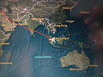 A mon réveil, la petite télé m’indique qu’il nous reste encore plus de 7 h de vol, que l'on est passé au-dessus de Bombay et que l'on approche des côtes du Pakistan.